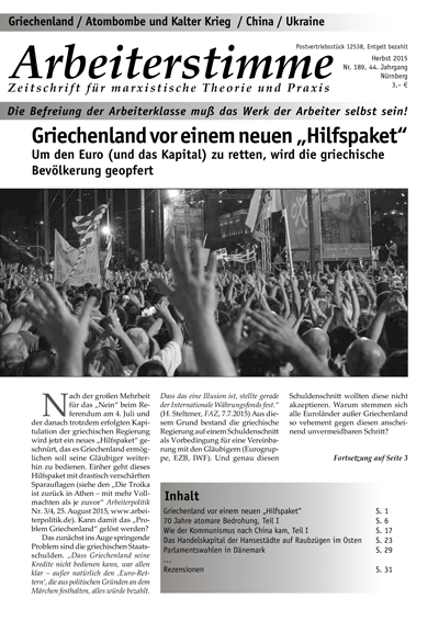 Die Aufsätze in dem vorliegenden Buch sind erstmalig in der Arbeiterstimme in den Ausgaben September 1986 bis Oktober 1987 veröffentlicht und später in einer Broschüre zusammengefasst worden.